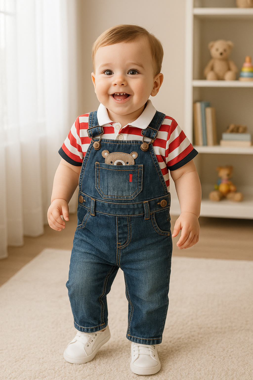PRODUCTO: Overol bordado con camiseta a rayas para niño