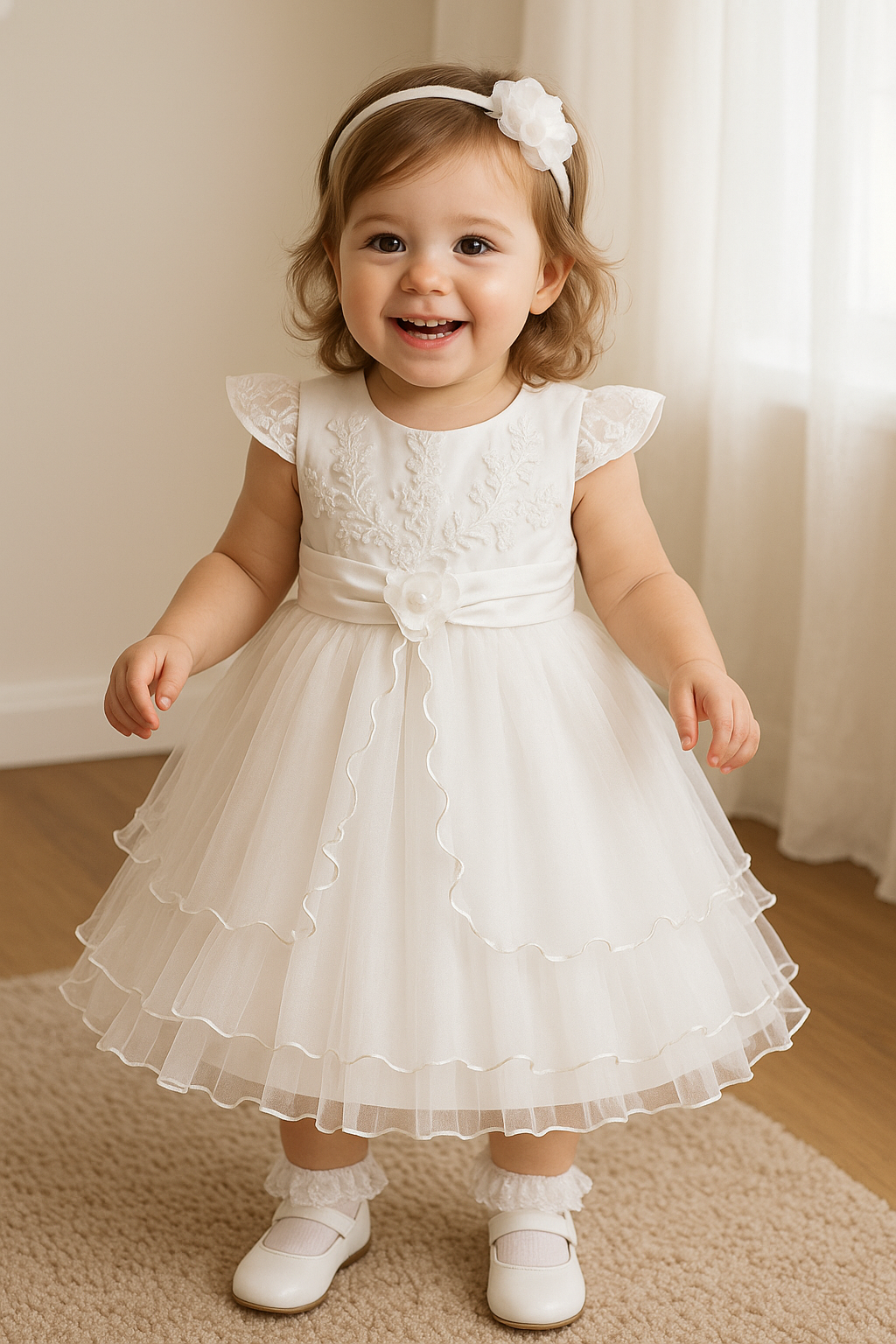 PRODUCTO: Vestido para bautizo blanco con bolados