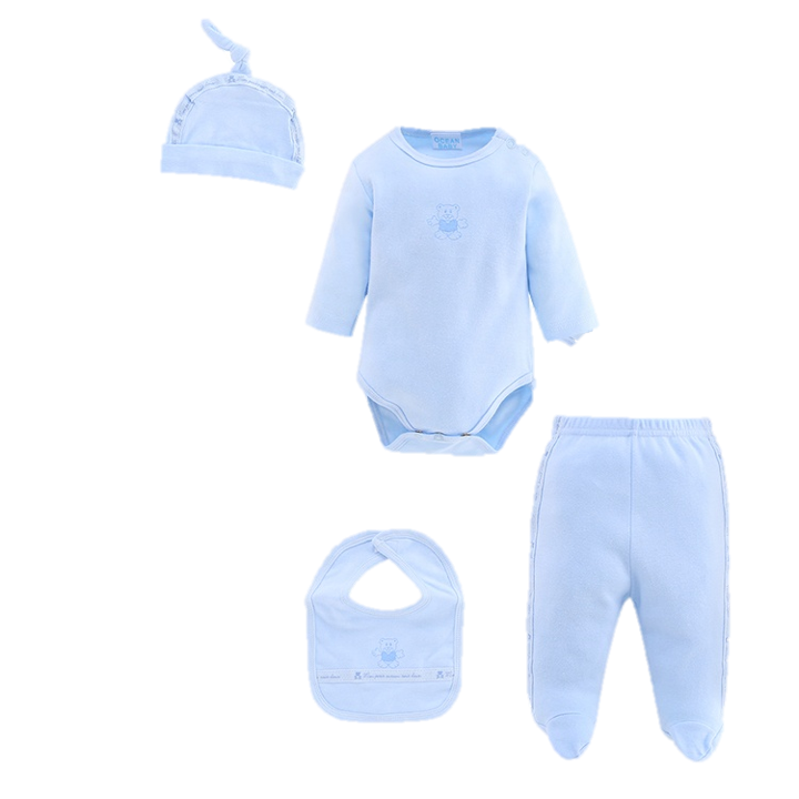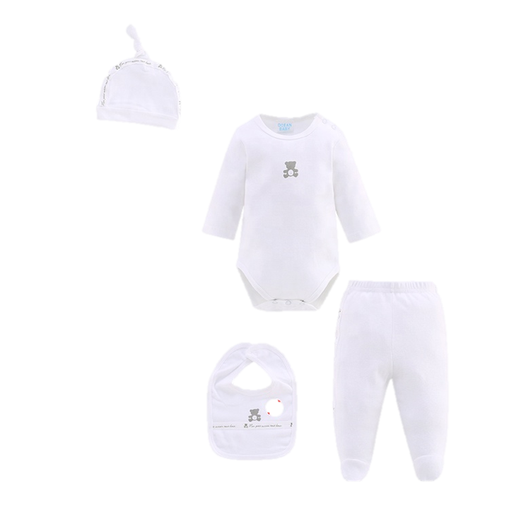 - Incluye: Body, pantalón enterizo, baberito y gorrito