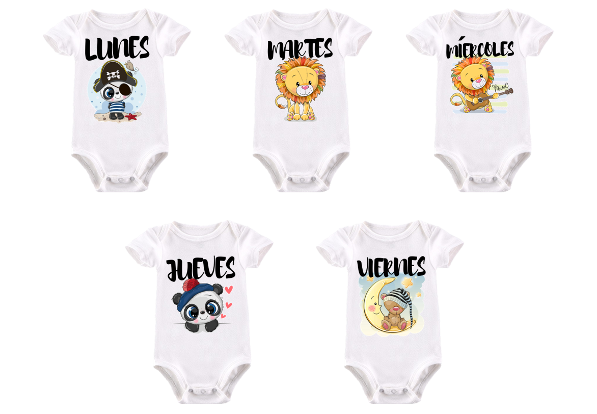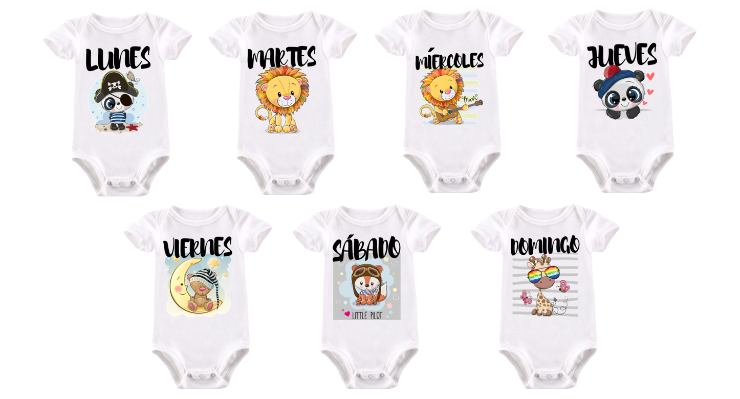DISEÑO: Creamos el diseño que prefieras apoyándonos en inteligencia artificial y herramientas de diseño para personalizar los bodies de tu bebé. ¡Déjate llevar por la creatividad! Desde anunciar tu embarazo, celebrar cumpleaños, incluir frases divertidas, un body para cada día de la semana o resaltar ocasiones especiales, hacemos de cada prenda un recuerdo único.