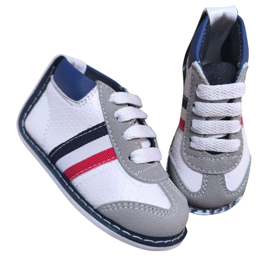 PRODUCTO: Tenis no tuerce blanco con azul y rojo para niño