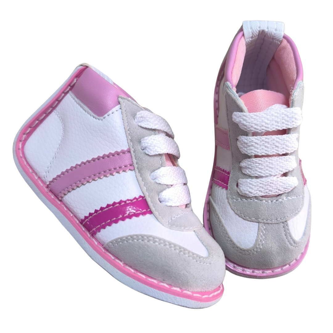 PRODUCTO: Tenis no tuerce blanco con rosado y fucsia para niña